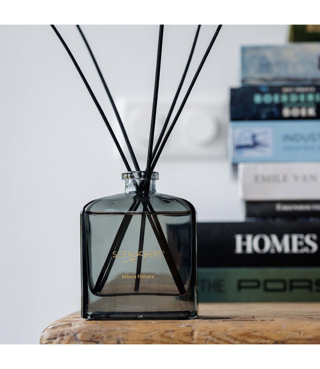 Dieses Duftstäbchenset enthält einen grauen Reed-Diffuser, gefüllt mit dem Saku...