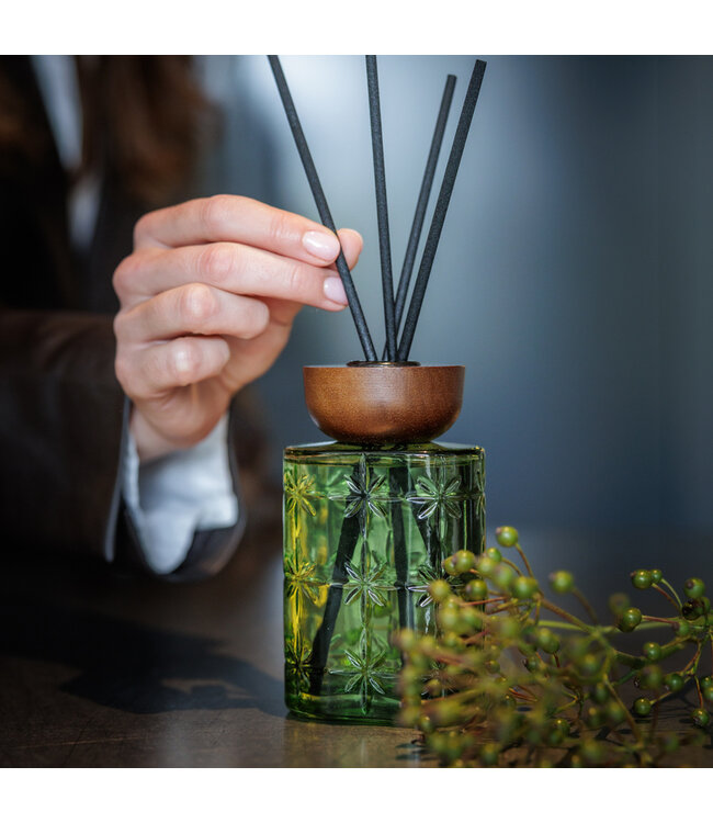 Un délice à offrir ou à recevoir ! Ce diffuseur bâtonnets verts est rempli de la délicieuse fragrance Nectarine & Fig de Scentchips. Il est livré avec 7 bâtonnets diffuseurs parfumés noirs qui vous permettront de profiter instantanément de ses belles senteurs pour votre intérieur.