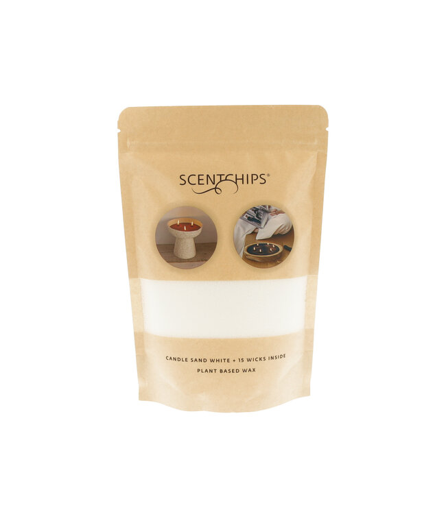 Sable pour bougie 250 grammes de couleur blanc de Scentchips. Créez facilement des bougies dans toutes les formes souhaitées. Inclus 15 mèches détachées. Sûr et facile à utiliser.