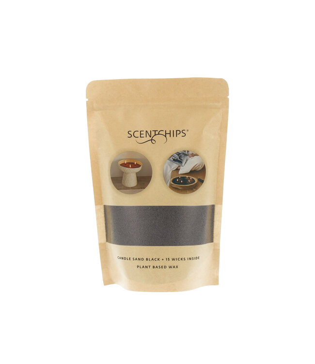 Sable pour bougie 250 grammes de couleur noire de Scentchips. Créez facilement des bougies dans toutes les formes souhaitées. Inclus 15 mèches détachées. Sûr et facile à utiliser.